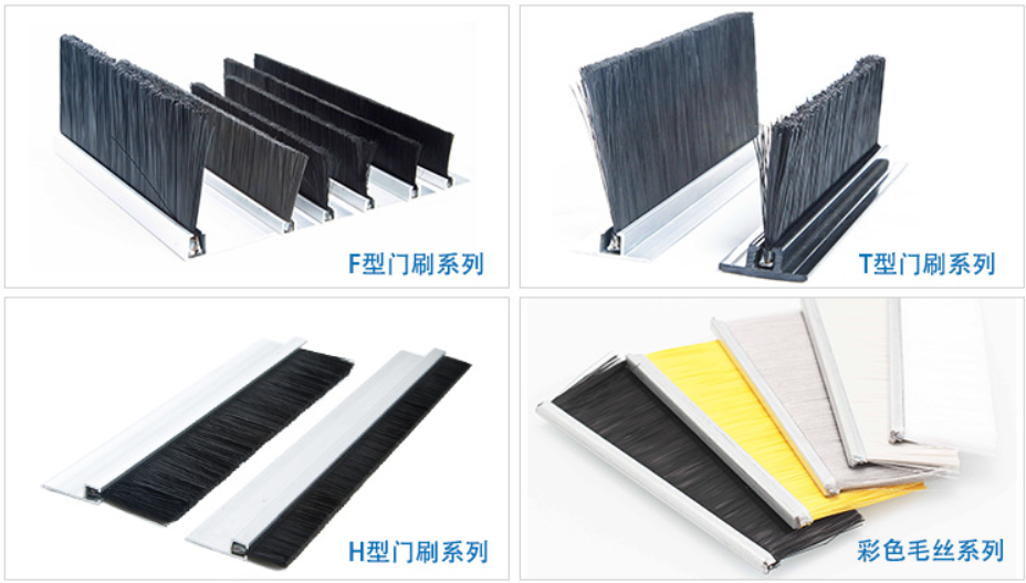 毛刷由三部分材料組成,鐵皮(不銹鋼) 鐵線 毛料(PP PA PPT 羊毛 馬毛 豬鬃等等),PP和PA常規(guī)色為黑色,目前我司已有顏色為黑色、白色、透明色、灰色、紅色、黃色,一些特殊產(chǎn)品需要用到特殊的顏色,比如電梯毛刷,由于是裝在底部,需要起到提示警醒的作用,一般會(huì)用比較鮮艷的顏色,如紅色和黃色;另外機(jī)柜和線盒一般會(huì)用到白色和灰色;羊毛以黑色為主,馬毛有花馬毛、黑馬毛,一般旋轉(zhuǎn)門用的較多;豬鬃由于較硬,故一般用于機(jī)械設(shè)備。